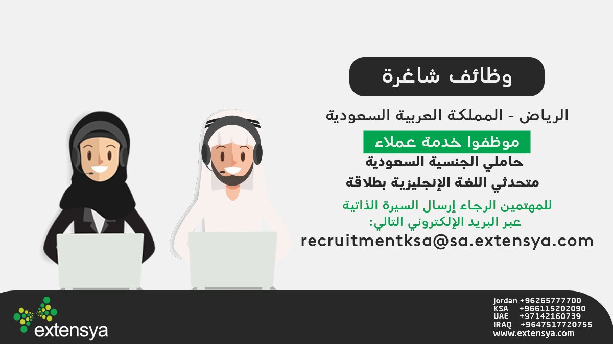 وظيفتك عليناتعلن (شركة المساندة لخدمات الاسناد (اكستنسيا)) عبر حسابها الرسمي ( تويتر ) عن فتح باب التوظيف (للرجال - للنساء) بمجال خدمة العملاء للعمل في (الرياض)، واشترطت ان يكون المتقدم سعودي الجنسية، وذلك وفقاً للتفاصيل والشروط الآتية.