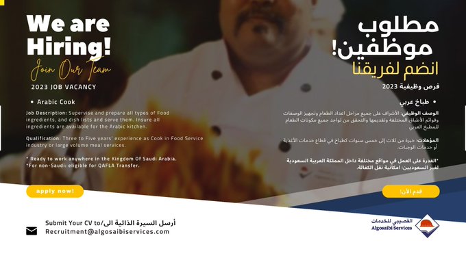 - خبرة لا تقل عن 3 سنوات كطباخ في قطاع خدمات الأغذية أو خدمات الوجبات.