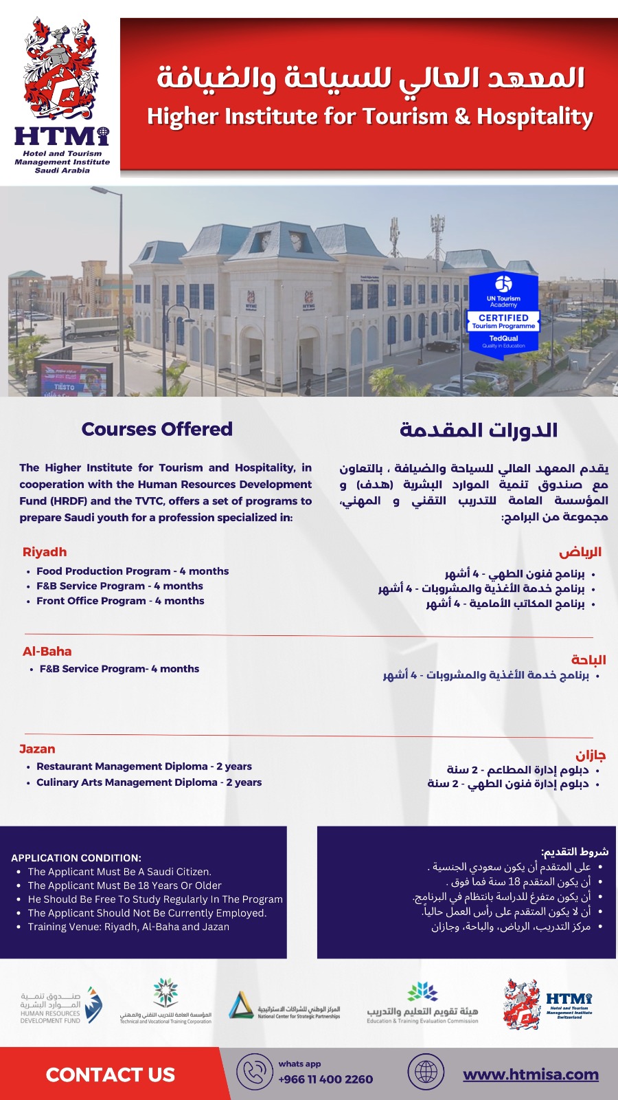 المعهد العالي للسياحة والضيافة يعلن عن برامج تدريبية منتهية بالتوظيف