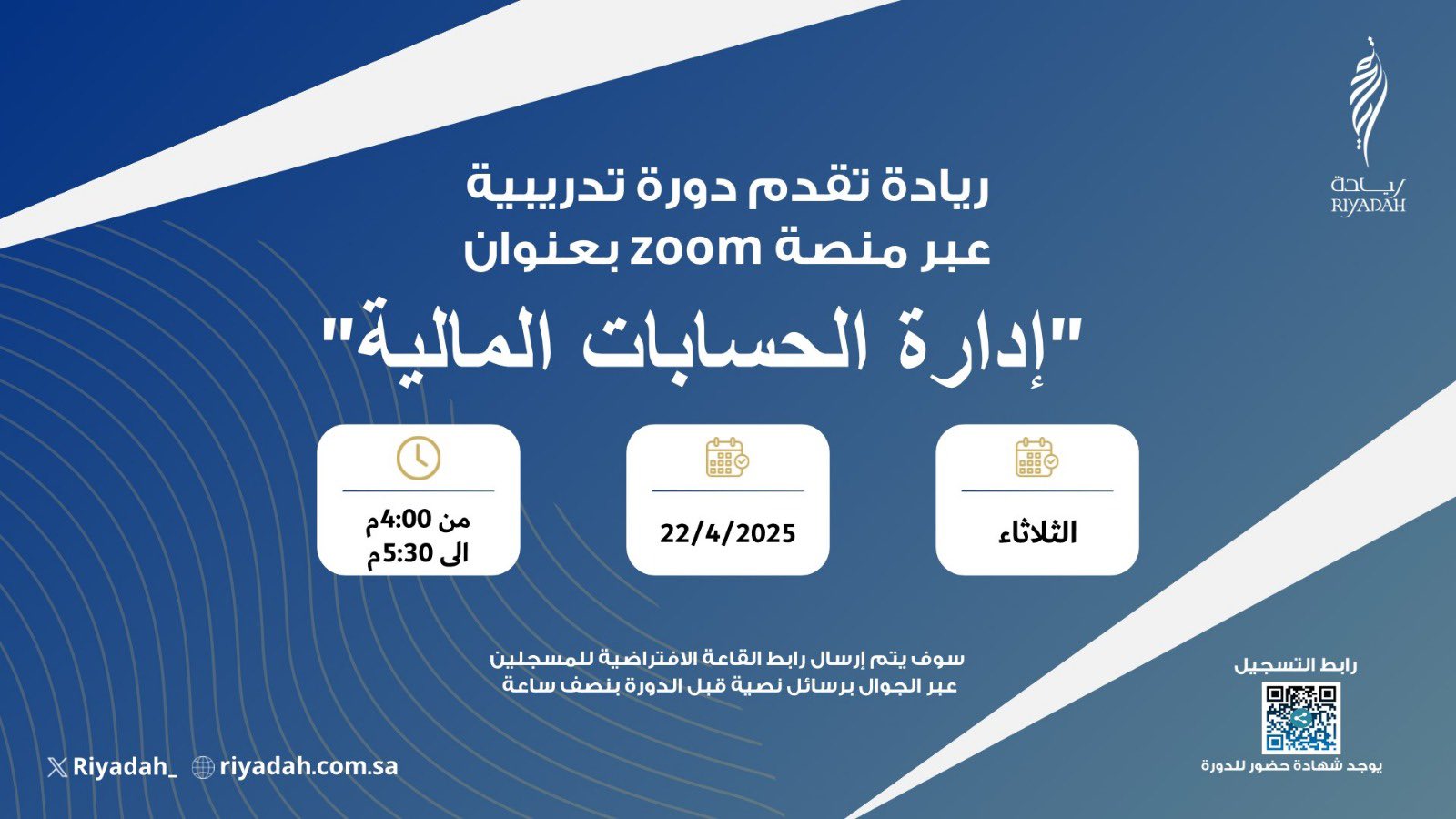 معهد ريادة الأعماليعلن (معهد ريادة الأعمال الوطني) عبر حسابه الرسمي على (تويتر) عن طرح دورة تدريبية مجانية عن بُعد للمهتمين بريادة الأعمال بعنوان (إدارة الحسابات المالية) ضمن برامج ريادة لتطوير مهارات رواد الأعمال، وذلك وفقاً للتفاصيل والشروط الآتية.