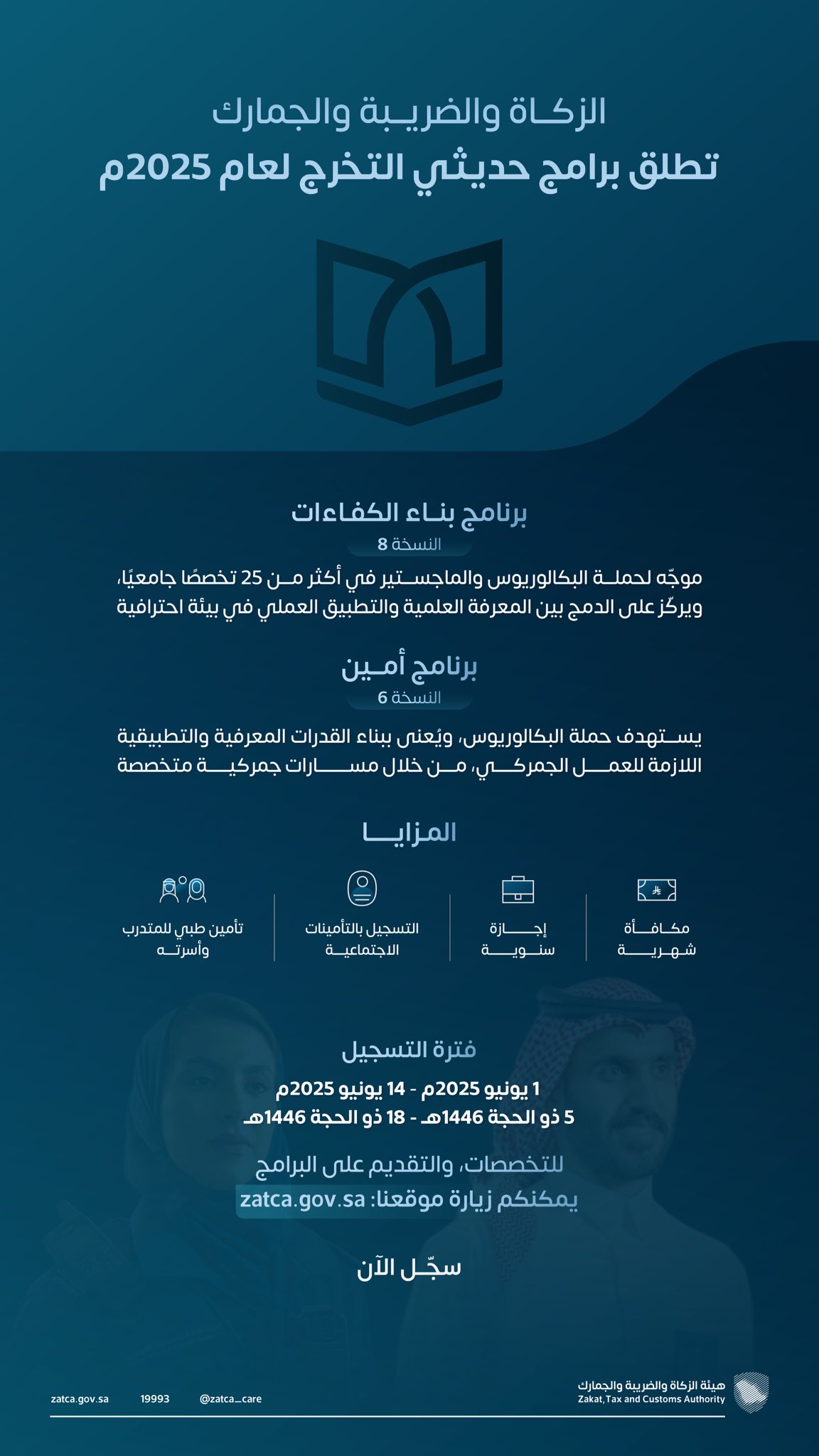 برامج كفاءات وأمين لحديثي التخرج لعام 2025م في هيئة الزكاة والضريبة