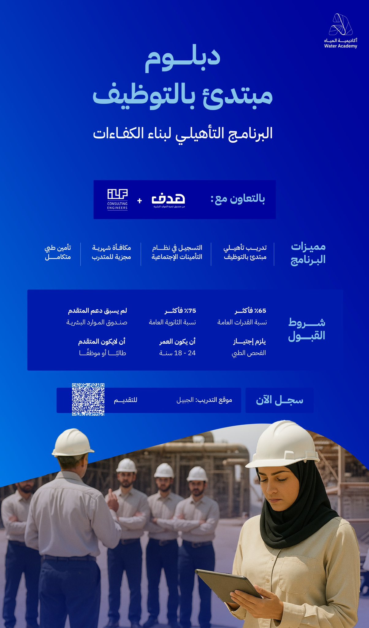 الأكاديمية السعودية للمياه تعلن برنامج دبلوم مبتدئ بالتوظيف لحملة الثانوية