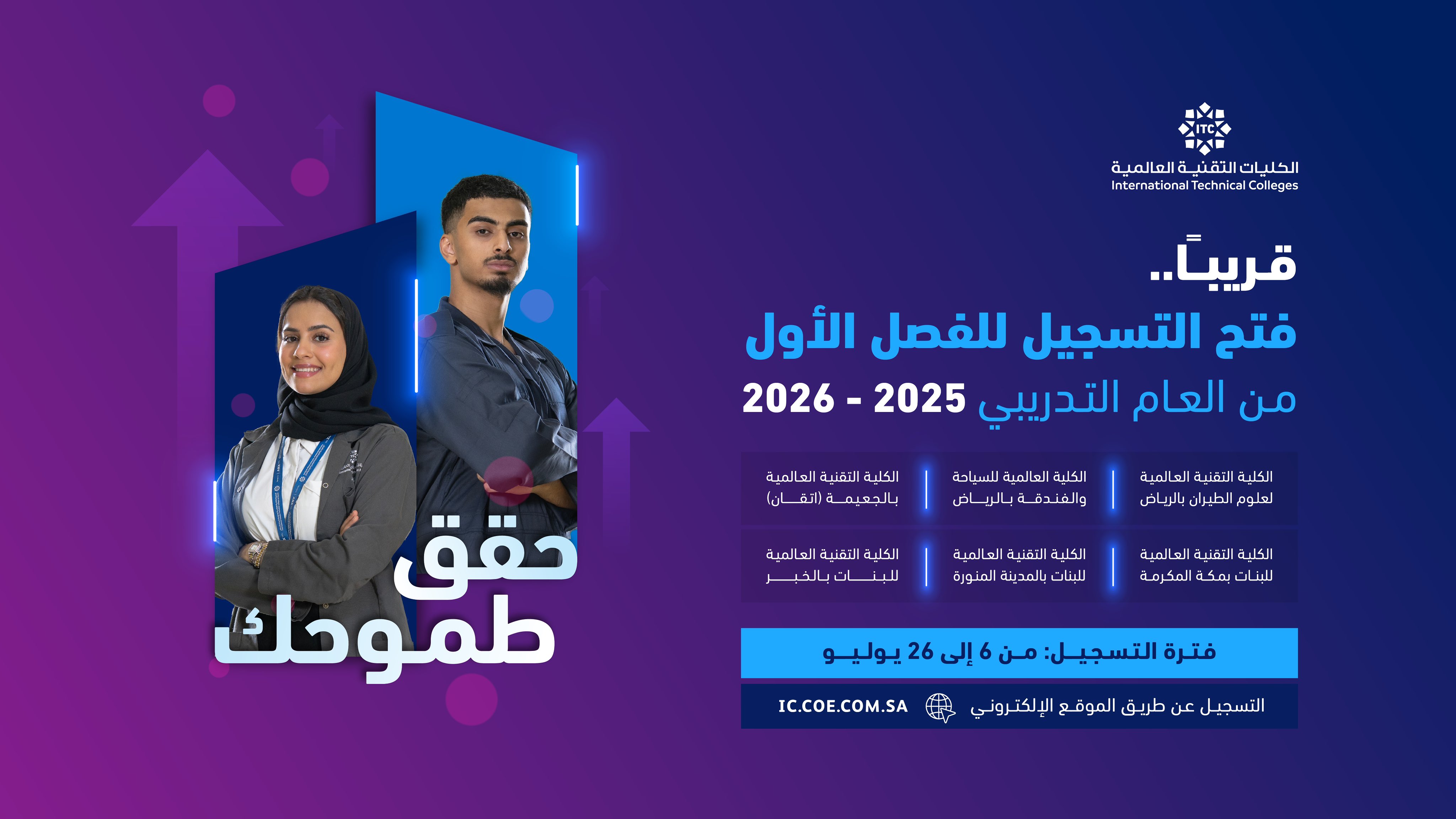 لخريجي الثانوية الكلية التقنية العالمية تعلن فتح باب التقديم لعام 2026م