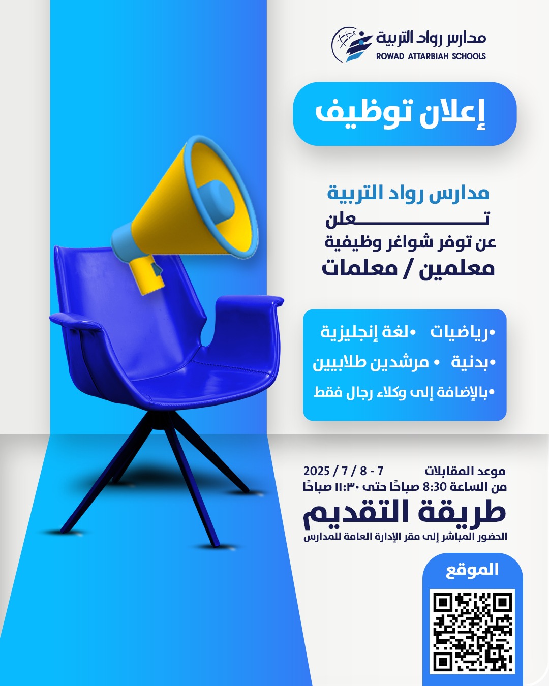وظائف معلمين ومعلمات ووكلاء بعدة تخصصات في مدارس رواد التربية الأهلية