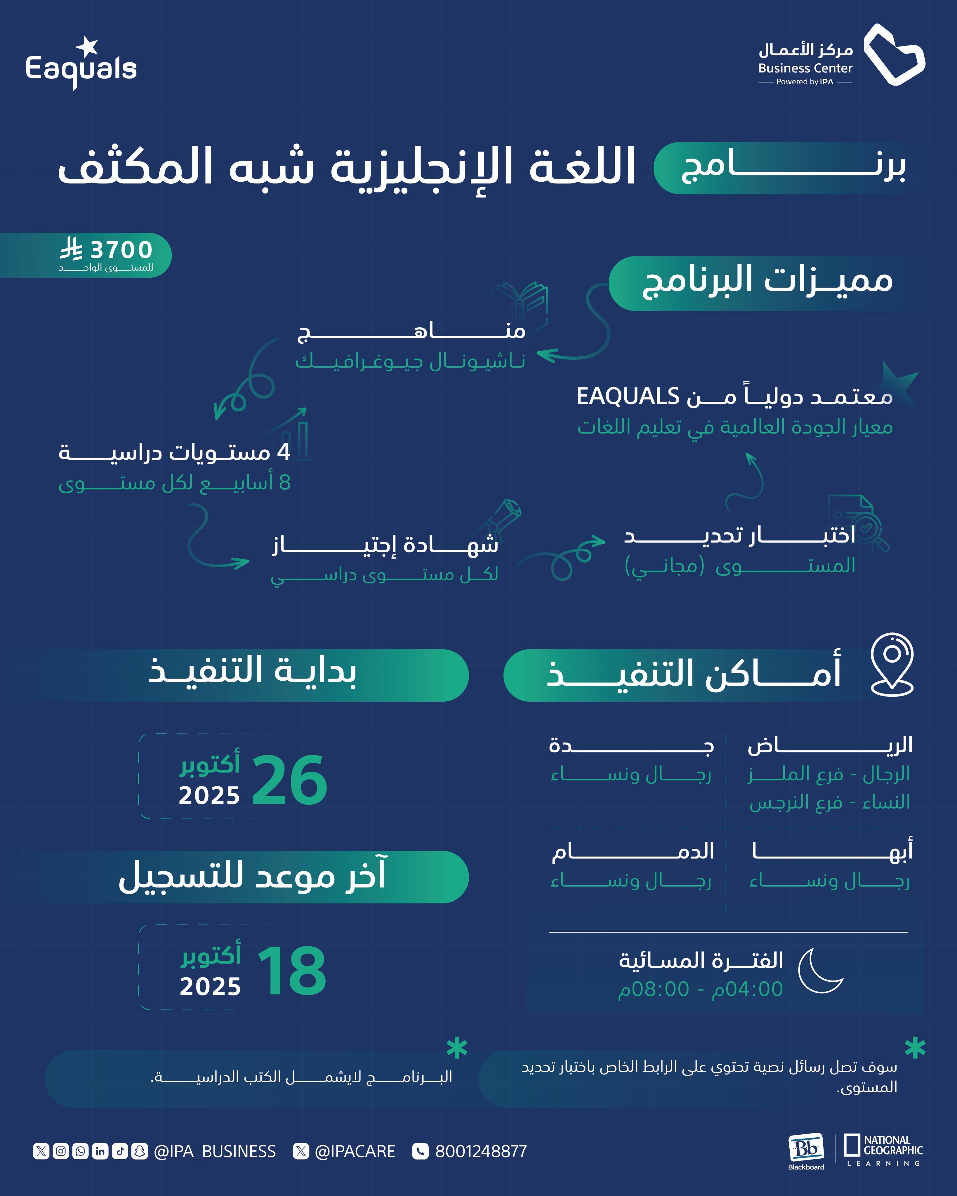 2- برنامج اللغة الإنجليزية شبه المكثف (حضوري): اضغط هنا