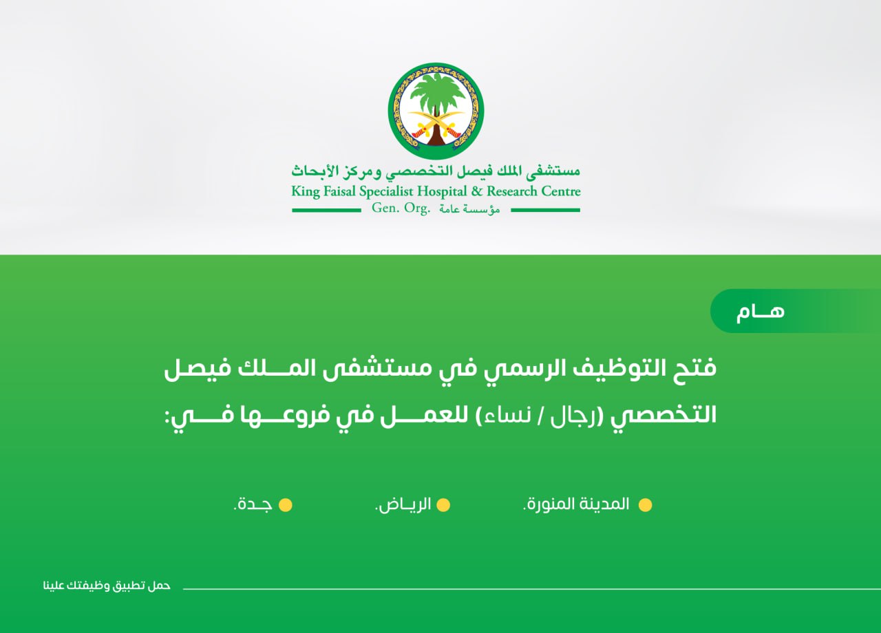 عبر موقع التوظيف في مستشفى الملك فيصل التخصصي