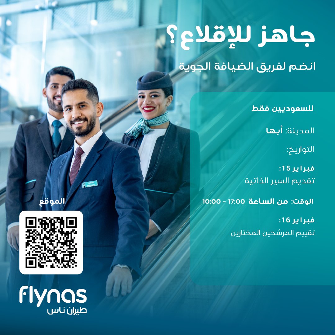 (طيران ناس) تعلن عن فتح باب التوظيف الفوري للانضمام لفريق الضيافة الجوية (بدون خبرة) في أبها رجال ونساء، وذلك من خلال التفاصيل الآتية.