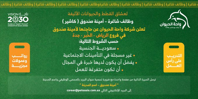شركة واحة الحيوانتفاصيل الوظيفة:
