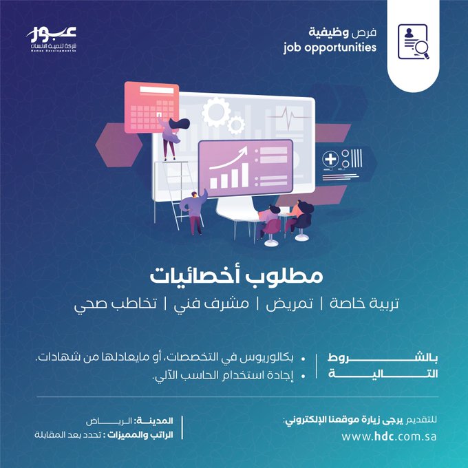 شركة تنمية الإنسان (عبور) تعلن عن توفر وظائف شاغرة بعدة تخصصات بالرياض
