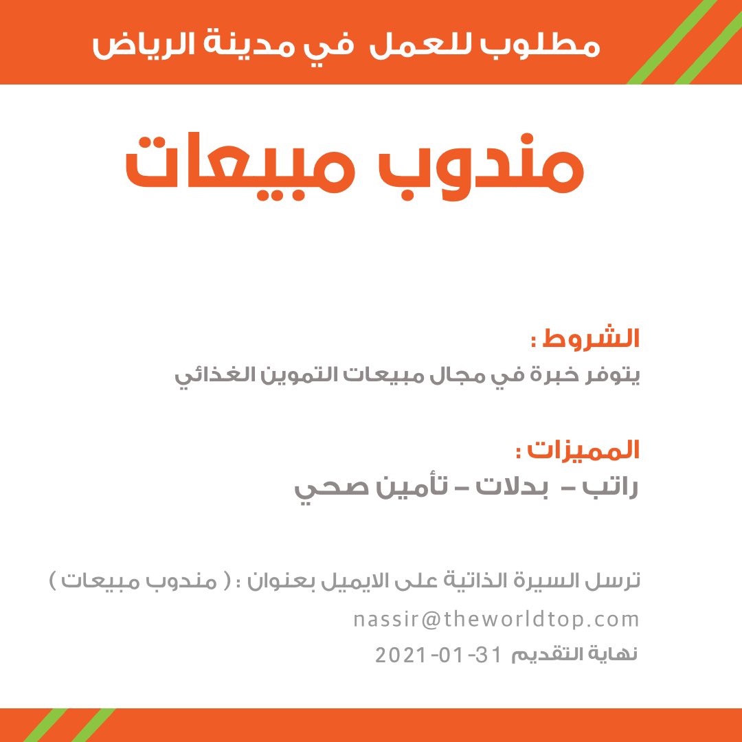 2021-01-11تعلن (شركة سقف العالم المحدودة) عبر حسابها (تويتر) عن توفر وظائف شاغرة بمسمى ( مندوب مبيعات ) للعمل في (الرياض)، واشترطت ان يكون المتقدم سعودي الجنسية، وذلك وفقاً للتفاصيل والشروط الآتية.