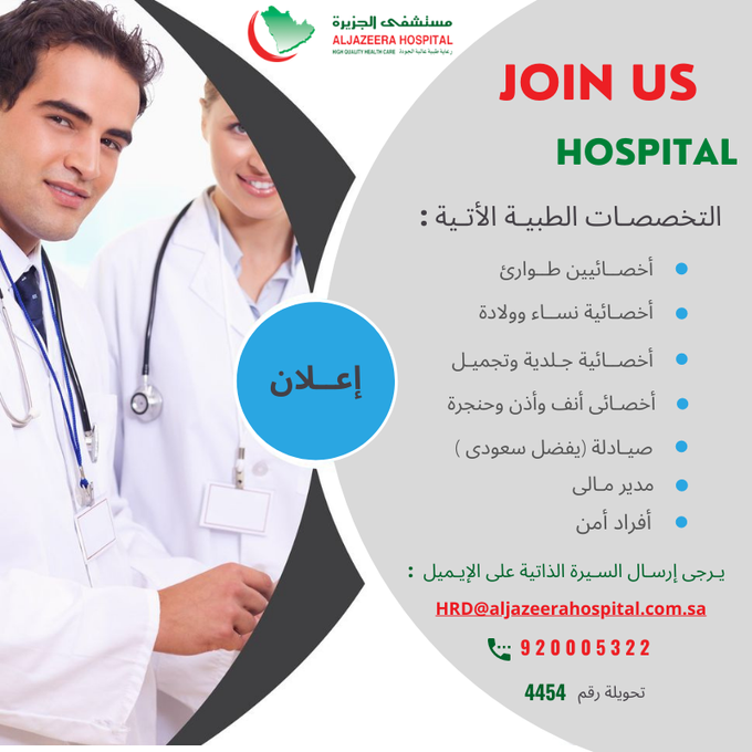 مستشفى الجزيرة الطبي يعلن عن فتح باب التوظيف للجنسين بالرياض