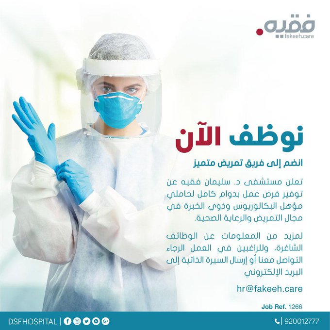 مستشفى د سليمان فقيه يعلن عن توفر وظائف تمريض لحاملي بكالوريوس بجدة
