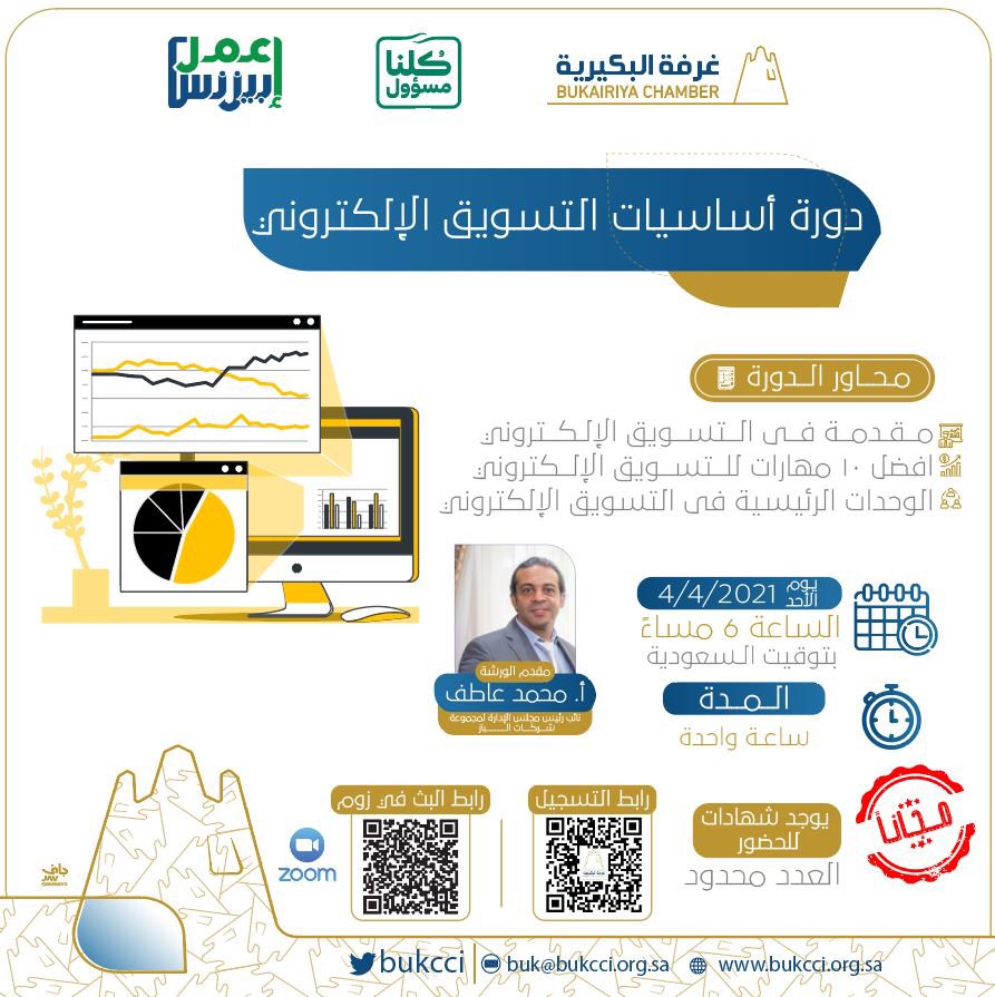 تعلن غرفة البكيرية عن دورة مجانية (عن بُعد) في مجال التسويق بشهادة للحضور