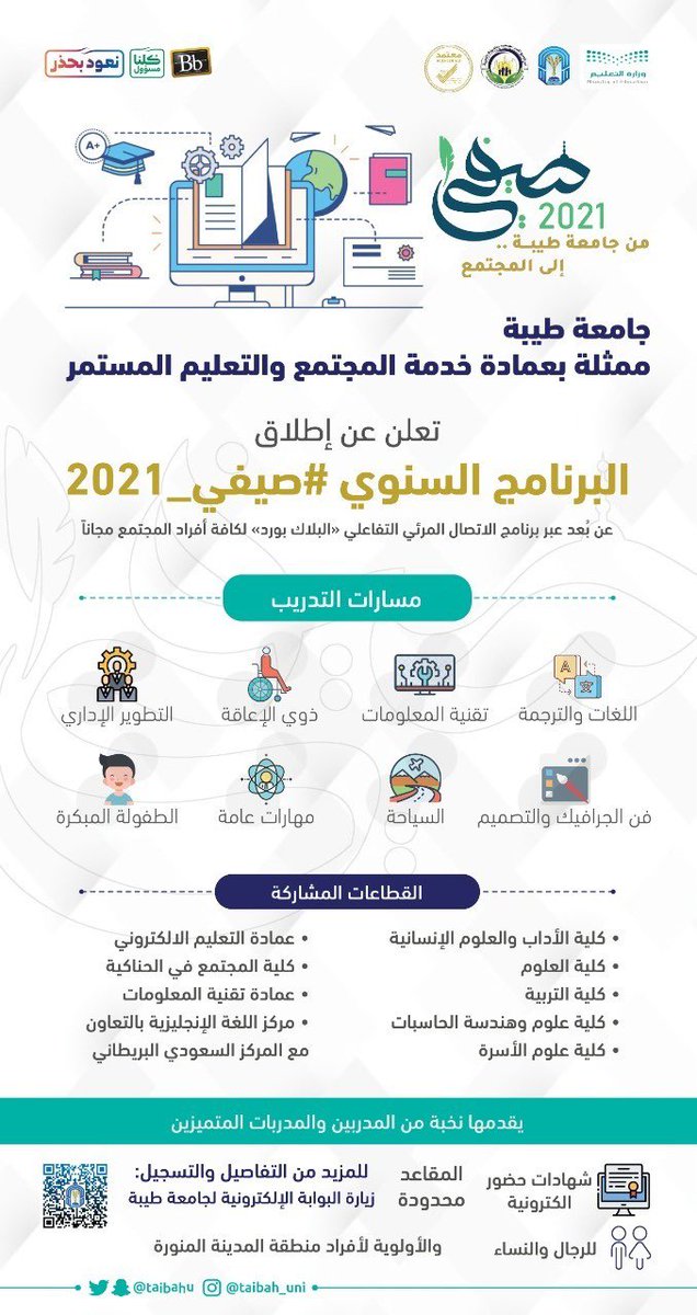 جامعة طيبة تعلن عن إطلاق البرنامج السنوي صيفي 2021م لكافة أفراد المجتمع مجاناً